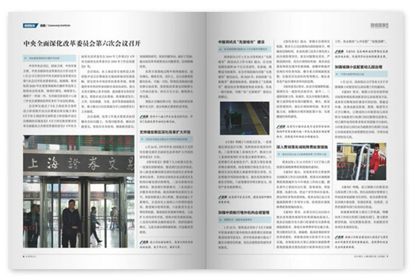 《財經國家周刊》主要欄目:國是論、編輯論壇、瞭望智庫、轉型觀察、極度調查、宏觀、金融,等。