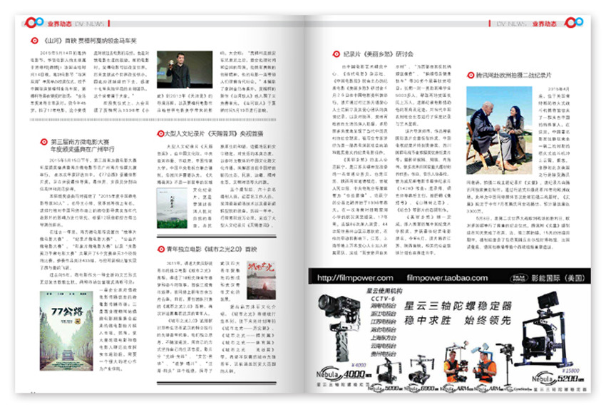 一本創(chuàng)造DV影像夢(mèng)工廠的專家級(jí)刊物雜志,一直致力于在數(shù)字影像行業(yè)中文化和技術(shù)的活動(dòng),旗下品牌活動(dòng)包括:評(píng)測(cè)室;導(dǎo)演扶植計(jì)劃;榜樣英雄(秀場(chǎng));大講堂;高校巡講等活動(dòng),一本引領(lǐng)影像時(shí)代的雜志,一本創(chuàng)造影像夢(mèng)工廠的部級(jí)刊物。