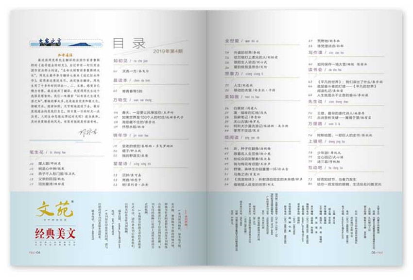 《文苑·經典美文》主要欄目:真、趣、人、美、風雅頌、詩禮樂、經典主題、閱讀留言。