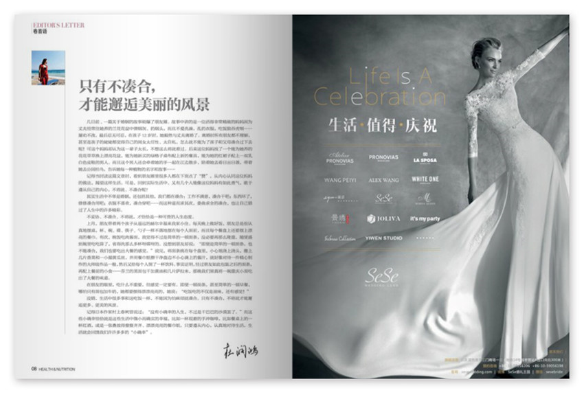 把握潮流理念,分享健康生活方式,提供多方位營養資訊,關愛精英生活,推動健康升級,著力打造健康、自由的生活理念,以最快的速度,以最專業的手法,較大化地為客戶和讀者創造價值,主要欄目:我們推薦,科學聲音,健康榜樣,大廚上菜,以提升健康素養為己任,并與衛生系統機構中國疾病預防控制中心聯合開設專題欄目,面向城市精英普及營養科學的雜志。
