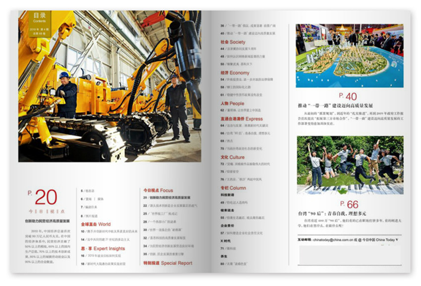 《今日中國》主要欄目:特別視點(diǎn),經(jīng)濟(jì),文化,旅游天地等。
