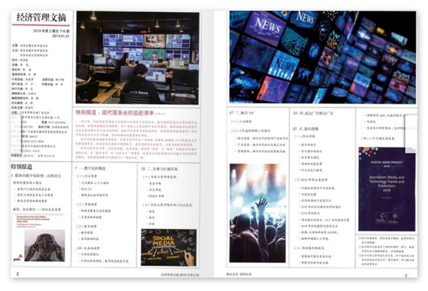 《經濟管理文摘》主要欄目:管理行知、海外工商、互聯網、產業轉移、世界論壇、他山之石、民族評論、專家視點、政策黃頁。