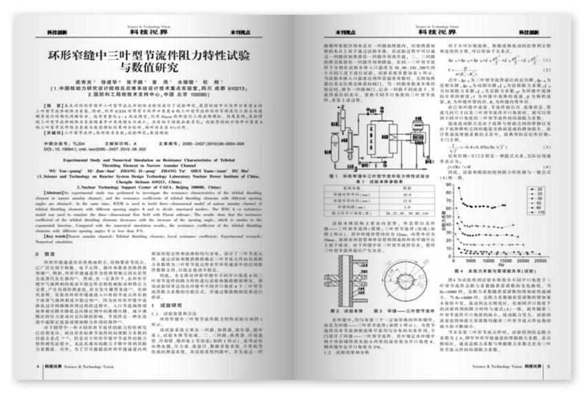 環形窄縫中三葉型節流件阻力特性試驗與數值研究,本文對環形窄縫中三葉型節流元件的阻力特性進行了試驗研究,獲得環縫中不同開口角度θ的三葉型節流件的阻力系數。同時,利用ICEM對帶有不同開口角度θ的三葉型節流件環形窄縫進行三維立體建模并進行結構化網格劃分。選用重整化k-ε湍流模型,利用Fluent軟件進行三維流場模擬。