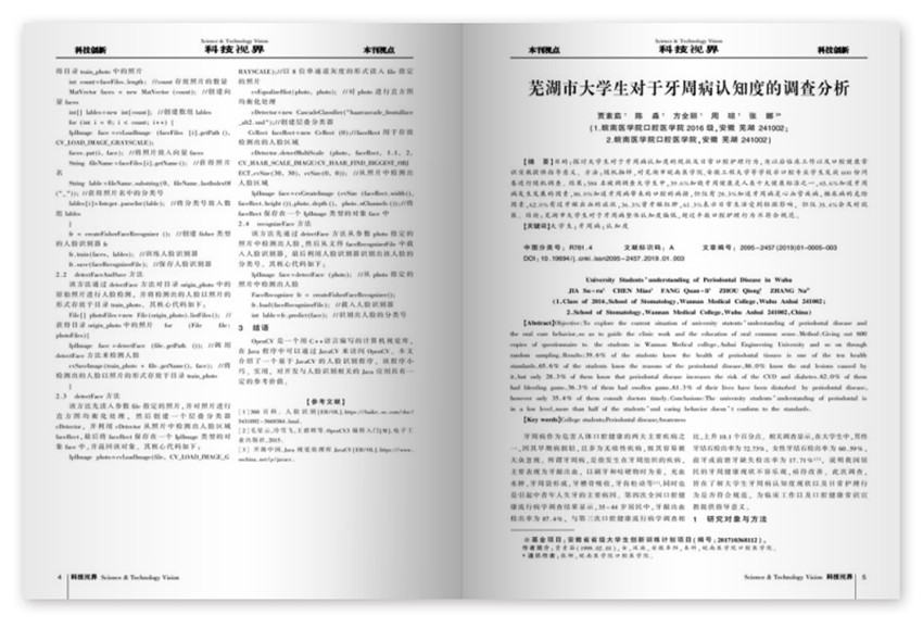 蕪湖市大學生對于牙周病認知度的調查分析,目的:探討大學生對于牙周病認知度的現狀及日常口腔護理行為,為以后臨床工作以及口腔健康常識宣教提供指導意義。方法:隨機抽樣,對蕪湖市皖南醫學院,安徽工程大學等學校非口腔專業學生發放600份問卷進行隨機調查。