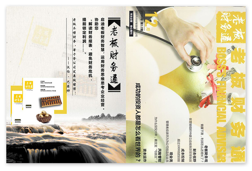 《老板財務通》創辦于1996年,月刊,單期90頁,《老板財務通》雜志啟迪您運用財務思維經營企業,協助您“增值個人財富、避免企業財務危機、提前鎖定利潤……”,是國內價格高、不刊登廣告、完全憑精到實用的內容取勝的經管雜志。