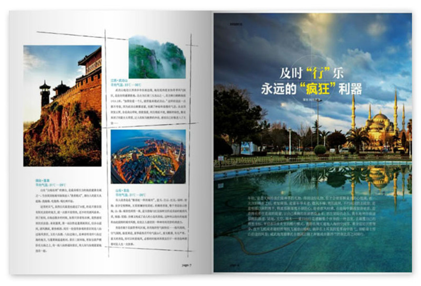 旅游雜志以中高端客戶為目標讀者群,160頁精美全彩印刷,全國單期發行量為15萬冊山東省一家具有全國統一刊號、公開發行的旅游類期刊。是你行囊中體恤、忠實的旅伴,也可以是你枕邊溫柔、耐心的故事家。