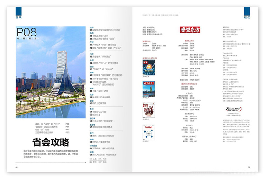 《瞭望東方周刊》,創(chuàng)刊于2003年,期望通過(guò)自身在傳播領(lǐng)域的資源優(yōu)勢(shì),給我們帶來(lái)高品質(zhì)生活,紙張開(kāi)本:16開(kāi),國(guó)內(nèi)刊號(hào):CN:11-5115/Z。注重第一時(shí)間解讀中國(guó)高層決策背景,從新興階層讀者關(guān)注的角度切入,深層次報(bào)道重大政治、經(jīng)濟(jì)、社會(huì)新聞,努力用新的表述方式提供有效價(jià)值含量高的信息和分析。