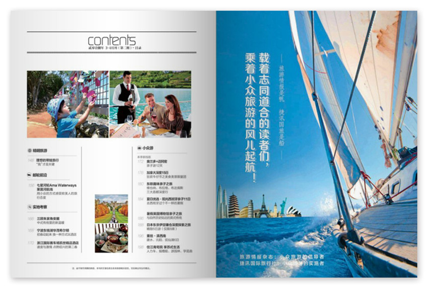 一本專門為旅游愛好者準(zhǔn)備的旅游信息雜志,在這里,您可以找到讓你心動的旅游目的地,也可以發(fā)現(xiàn)適合自己的旅游方式,同樣,您還可以為家人選擇一個充滿樂趣的度假產(chǎn)品,緊抓“旅游”與“信息”兩大主題,針對讀者對旅游度假產(chǎn)品的實際需求,將可讀性、指導(dǎo)性、可操作行、服務(wù)性融為一體。