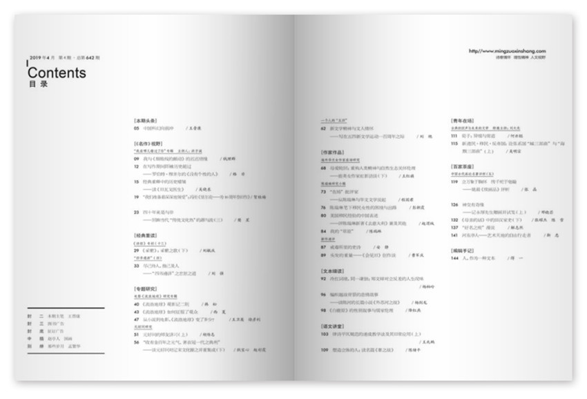 《名作欣賞》主要欄目:名家在線、名作養心、美文悅目、古典今讀、等。