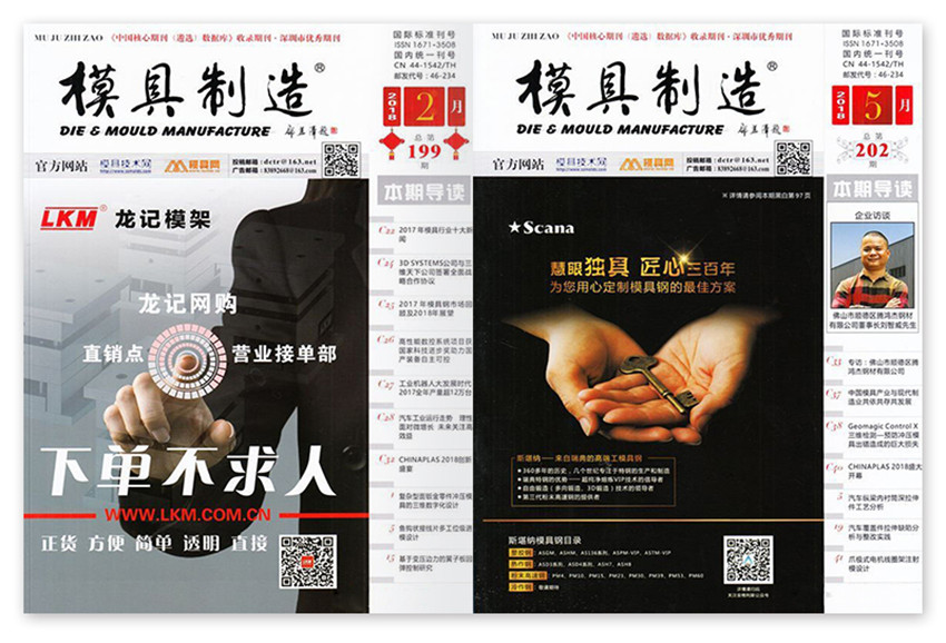 《模具制造》創(chuàng)辦于2001年,月刊,單期96頁(yè),《模具制造》雜志是由國(guó)家科技部和國(guó)家新聞出版署批準(zhǔn)在國(guó)內(nèi)外合法公開(kāi)發(fā)行的大型科技期刊,本刊實(shí)用性較強(qiáng),對(duì)工廠企業(yè)很有幫助,是目前中國(guó)發(fā)行量具影響力的模具專業(yè)雜志之一。