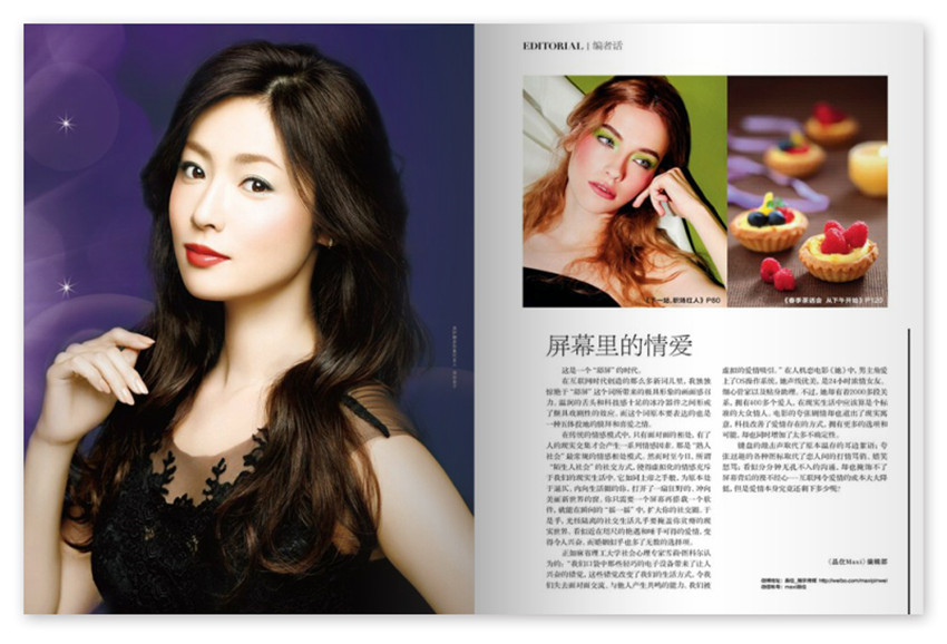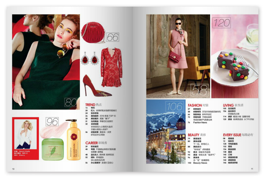 本便攜式高端時尚生活刊物,專為中國商務女性提供品質生活服務和指南,主要欄目:潮流Trend、時裝Fashion、職場Career、美身體Body&Beauty、自我Spirit、在生活Living等。