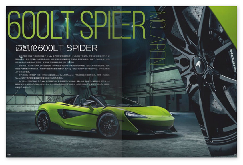邁凱倫600LTSPIDER,基于邁凱倫600LT打造的600LTSpider是邁凱倫家族中第五款Longtail(LT)車型。這款車在邁凱倫600LT硬頂版的基礎(chǔ)上更換為折疊式的硬頂敞篷結(jié)構(gòu),相比軟頂織物頂篷提供了更強的安全性和耐磨性。據(jù)官方公布的數(shù)據(jù),車頂可在40km/h的速度內(nèi)實現(xiàn)開閉,車頂升起后可以額外提供52L行李空間。
