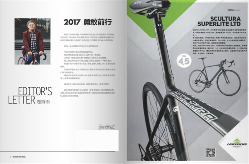 中國(guó)自行車協(xié)會(huì)和中國(guó)輕工業(yè)出版社共同策劃出版的及時(shí)本面向騎車愛(ài)好者的雜志,定位于戶外達(dá)人、白領(lǐng)、商務(wù)成功人士,雜志致力于通過(guò)展示品質(zhì)、特色自行車產(chǎn)品和相關(guān)裝備、附件,以及傳遞自行車旅游、自行車環(huán)保、自行車健身為主的自行車時(shí)尚生活方式。