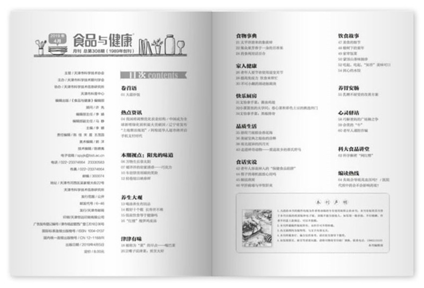 《食品與健康》創(chuàng)辦于1989年,月刊,單期64頁,《食品與健康》雜志是一本倡導(dǎo)人們提高生活質(zhì)量的科普期刊,雜志重視對(duì)讀者的人文關(guān)懷,文章內(nèi)容既繼承傳統(tǒng),又貼近生活,著力探索更為便捷、舒適、健康的生活方式,為讀者帶來權(quán)威性的科學(xué)生活指導(dǎo)和愉悅的精神享受。
