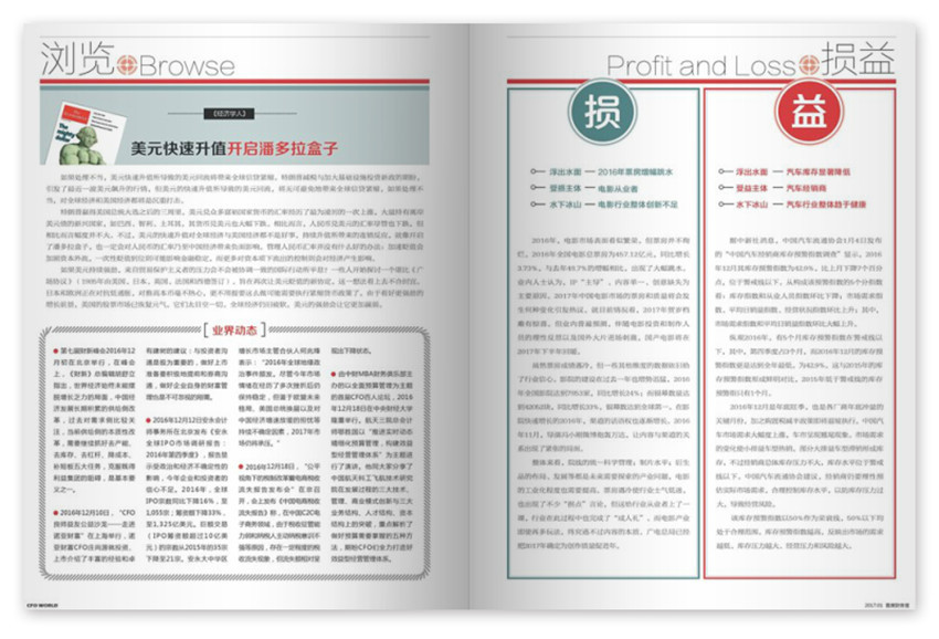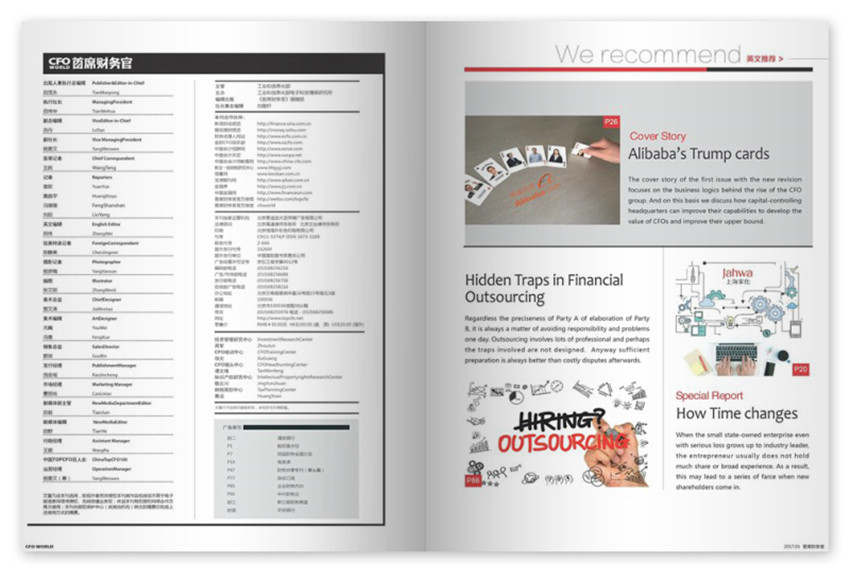 《首席財務官》主要欄目:編者的話、瀏覽、損益、特別報道、金融前瞻、財資天下、資本運作、投資者關系、銀企互聯、風險管理、企業社會責任、CFO實戰、職場、稅務。
