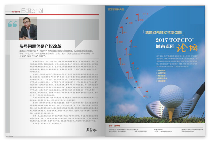《首席財務官》雜志是目前CFO領域內覆蓋為廣泛的、規模較大的、公開出版的大型部級專業期刊,自創立以來深受涵蓋國企、本土及海外上市公司、民營企業和外資企業的CFO們所喜愛,發行量高達16.2萬份,是該領域內發行量和出版規模較大的雜志。