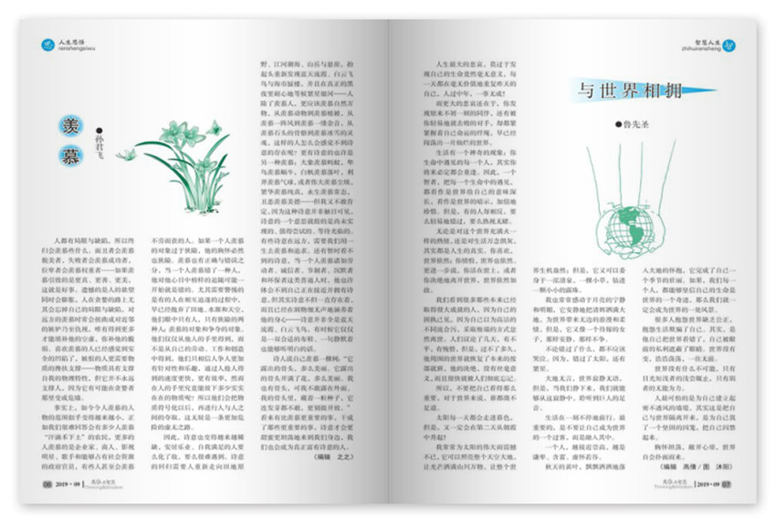 《思維與智慧》內容豐富,文筆優美:雜志有欄目思、情、趣、這些欄目各有不同的定位與內容,內容很豐富,從各個方面為讀者提供人生中的道理,而且文章文筆優美,可以說是為廣大讀者奉獻了一份精美的文化大餐。