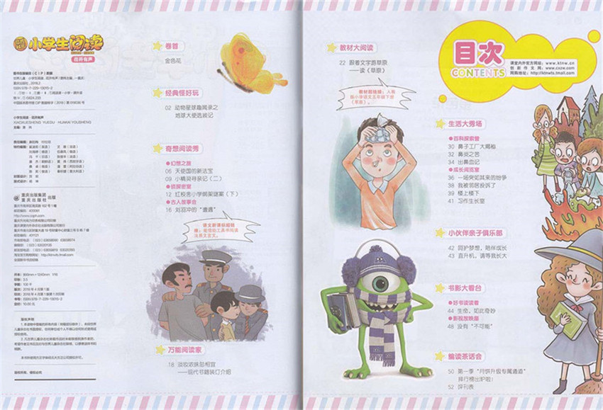 《世界兒童小學生閱讀》主要欄目:經典小書閣、美文淘寶店、課文連連看、讀寫夢工廠、歡樂QQ堂、開心雙語園。