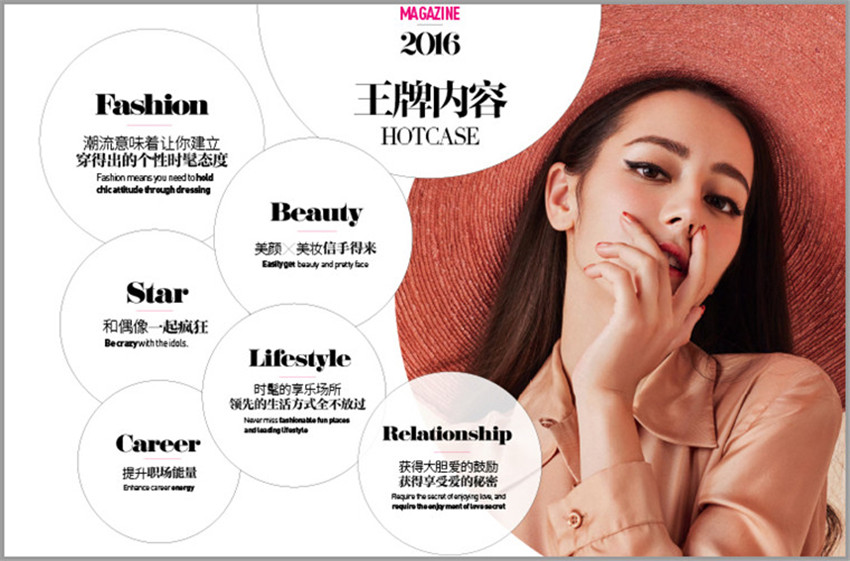 《時尚·伊人》主要欄目:職業、生活、時裝、美容、娛樂等。