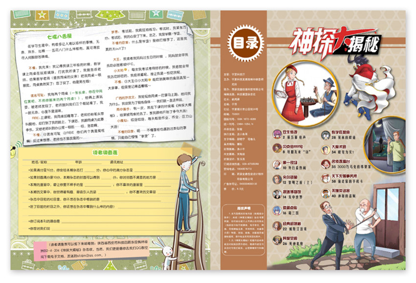 《啟迪·神探大揭秘》,創刊多年,期望通過自身在傳播領域的資源優勢,給我們帶來高品質生活,紙張開本:16開,國內刊號:CN:61-1476/C。對于平常的偵探案件,他通常都不感興趣,但如果這個案件涉及神秘或者是鬼怪的東西,他立馬就會有了興趣,常見的狀態是懶洋洋趴在陽光照耀下的一張靠窗戶的桌子上睡覺。