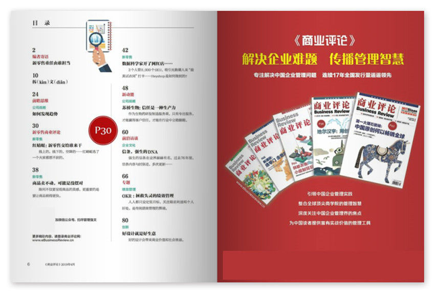 《商業評論》創辦于2002年,月刊,單期152頁,《商業評論》雜志致力于提供中國商業環境下有效的管理思想、方法和案例,幫助中國企業解決管理問題,發展至今,已成為中國管理媒體的領導品牌。