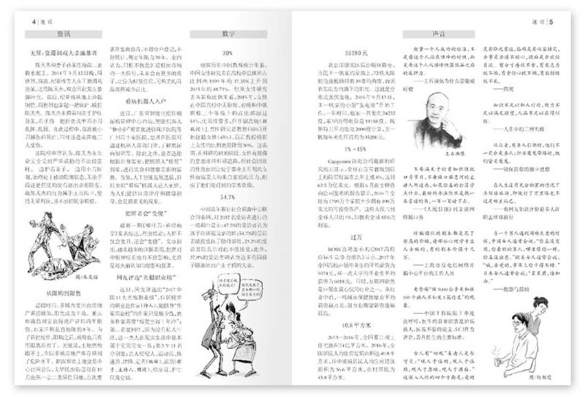 每期從1萬余種書報刊中精選文章,對當前的熱點事件進行深度披露,對各類社會現象展開多角度探析,對新鮮觀點與爭鳴作系統介紹,對紛繁復雜的人生作哲理性思考,內容涉及社會、人生、人物、文史、海外等各類經典文章,傳遞有關為人、立世、創業、發展的不朽價值,是你行走社會的生存讀本。