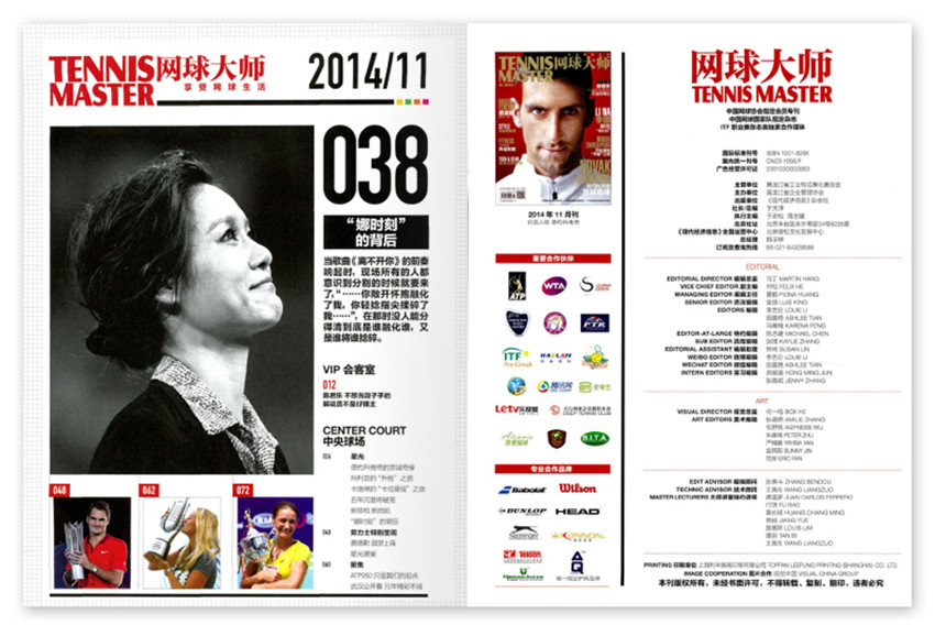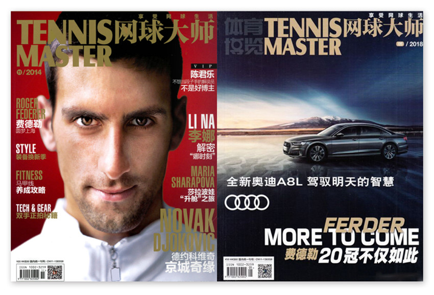 《網(wǎng)球大師》創(chuàng)辦于2007 年,月刊,單期135頁,《體育博覽·網(wǎng)球大師》雜志以高雅、現(xiàn)代的視覺表現(xiàn),豐富多元的內(nèi)容設(shè)置來傳播網(wǎng)球文化的時尚性,深度開發(fā)網(wǎng)球的高尚生活元素特性。