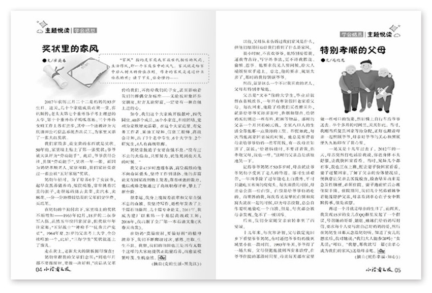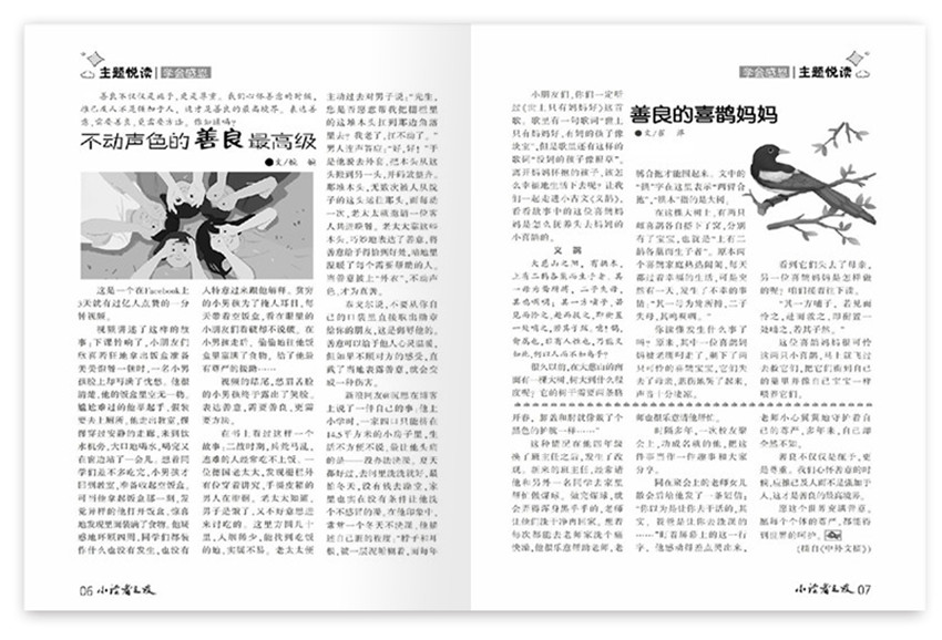《小讀者之友》創刊于2018年,始終堅持“學生學語文學做人的幫手,教師教語文教做人的助手”的辦刊理念,以“小讀者的心靈讀本”為追求目標,始終關注小讀者的心靈成長與閱讀需求,讓小讀者在有效的閱讀過程中,觀世界、品人文,學語文、樂成長,在廣博的知識中涵養心靈,在愛的故事里呵護童心。讓孩子在閱讀的過程中,走過筆端萬物、穿越時間智慧,同時培養他們在須臾間思考、于文海間行走的能力,讓小讀者讀出一副好心腸,讀出一副硬骨頭,讀出一個健康的靈魂。和《小讀者之友》一起,與好文章不期而遇。
