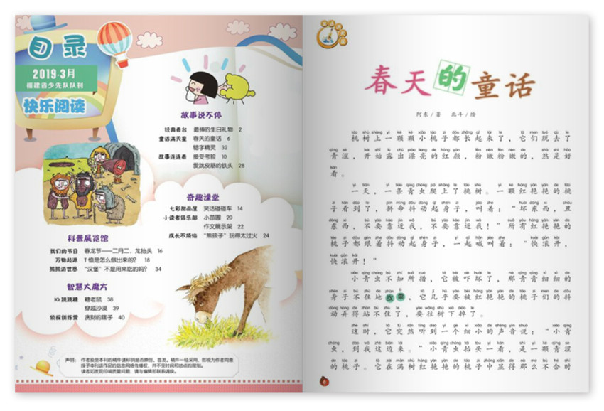 《小火炬》用圖文故事,介紹成語(yǔ)、漢字、詩(shī)詞、文化常識(shí)等貼近孩子生活學(xué)習(xí)小知識(shí),很有趣味,可以不知不覺(jué)漲知識(shí);而且雜志文章有注音,讀起來(lái)輕松不累,還會(huì)在文章里特別標(biāo)注生字,既可以輔導(dǎo)語(yǔ)文學(xué)習(xí),也可以激發(fā)孩子獨(dú)立閱讀的興趣。