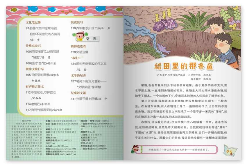 《小學生作文》,創刊于1981年,期望通過自身在傳播領域的資源優勢,給我們帶來高品質生活,紙張開本:32開,國內刊號:CN:12-1043/G4。欄目新穎、形式活潑,文字清新,深受廣大專家、家長和小讀者的喜愛,這里有精彩的原創佳作,這里有點穴的名師講評,這里有實用的寫話指導,這里有豐富的互動課堂……