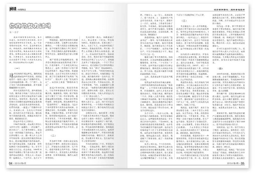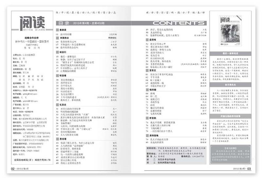 《閱讀》,創刊于2005年,期望通過自身在傳播領域的資源優勢,給我們帶來高品質生活,紙張開本:16開,國內刊號:CN:32-1729/G4。痛苦和磨難的咂嘗品味,是全刊中令人糾結和猶豫的版塊;文化和經典的別樣鑒賞,是全刊中令人驚奇和珍藏的版塊。