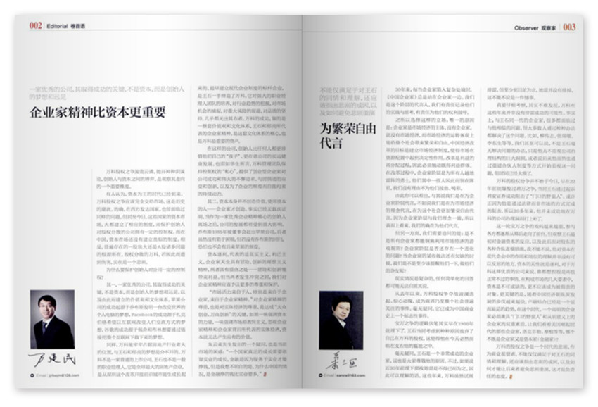 《中國企業家》雜志秉承“國力的較量在于企業,企業的較量在于企業家”、“公司改變中國”的理念,以“一個階層的生意與生活”為定位,以做懂企業家的內容生產者為追求,堅守企業家立場,弘揚企業家精神,推動商業文明建設,真可謂“一本雜志,一部中國新商業史”。