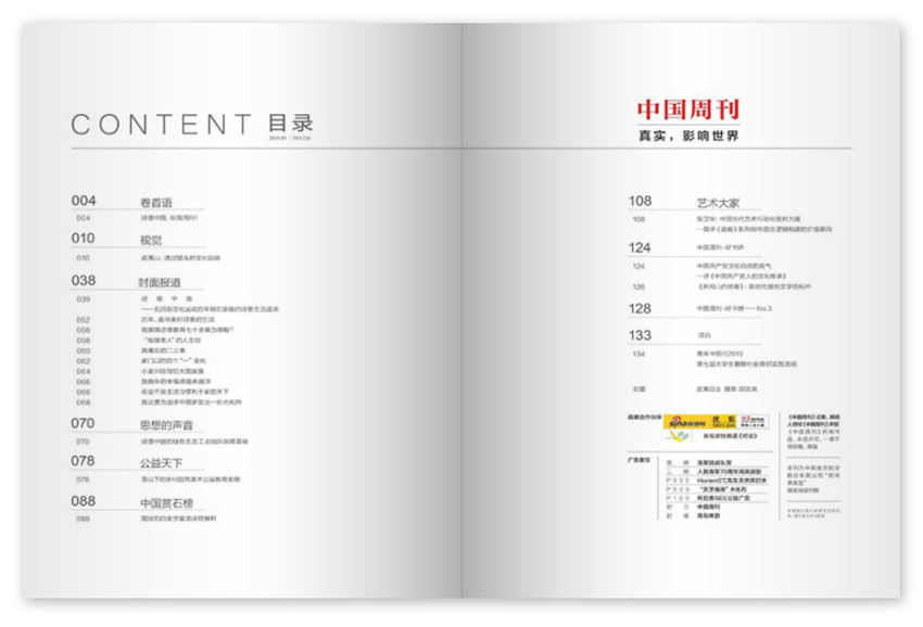 《中國周刊》主要欄目:速覽,重點,創造,人物,影像,調查等。