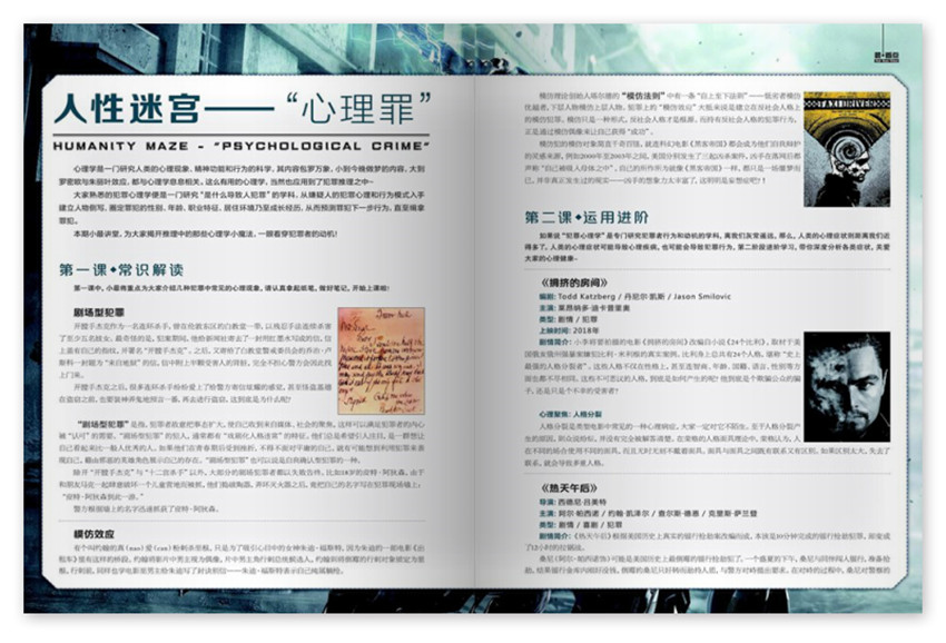 人性迷宮,心理學是一門研究人類的心理現象、精神功能和行為的科學,其內容包羅萬象,小到今晚做夢的內容,大到羅密歐與朱麗葉效應,都與心理學息息相關。這么有用的心理學,當然也應用到了犯罪推理之中,大家熟悉的犯罪心理學便是一門研究“是什么導致人犯罪”的學科,從嫌疑人的犯罪心理和行為模式入手建立人物側寫,圈定罪犯的性別、年齡、職業特征、居住環境乃至成長經歷,從而預測罪犯下一步行為,直至緝拿罪犯。
